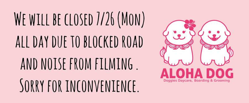 Aloha Dog will be closed on weekends beginning July until September 2020. Thank you for your cooperation.